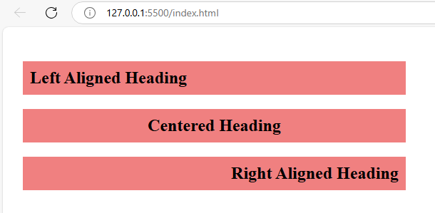 Explanation: The heading is aligned using left-aligned, center-aligned, and right-aligned. CSS properties can be added for styling the elements.